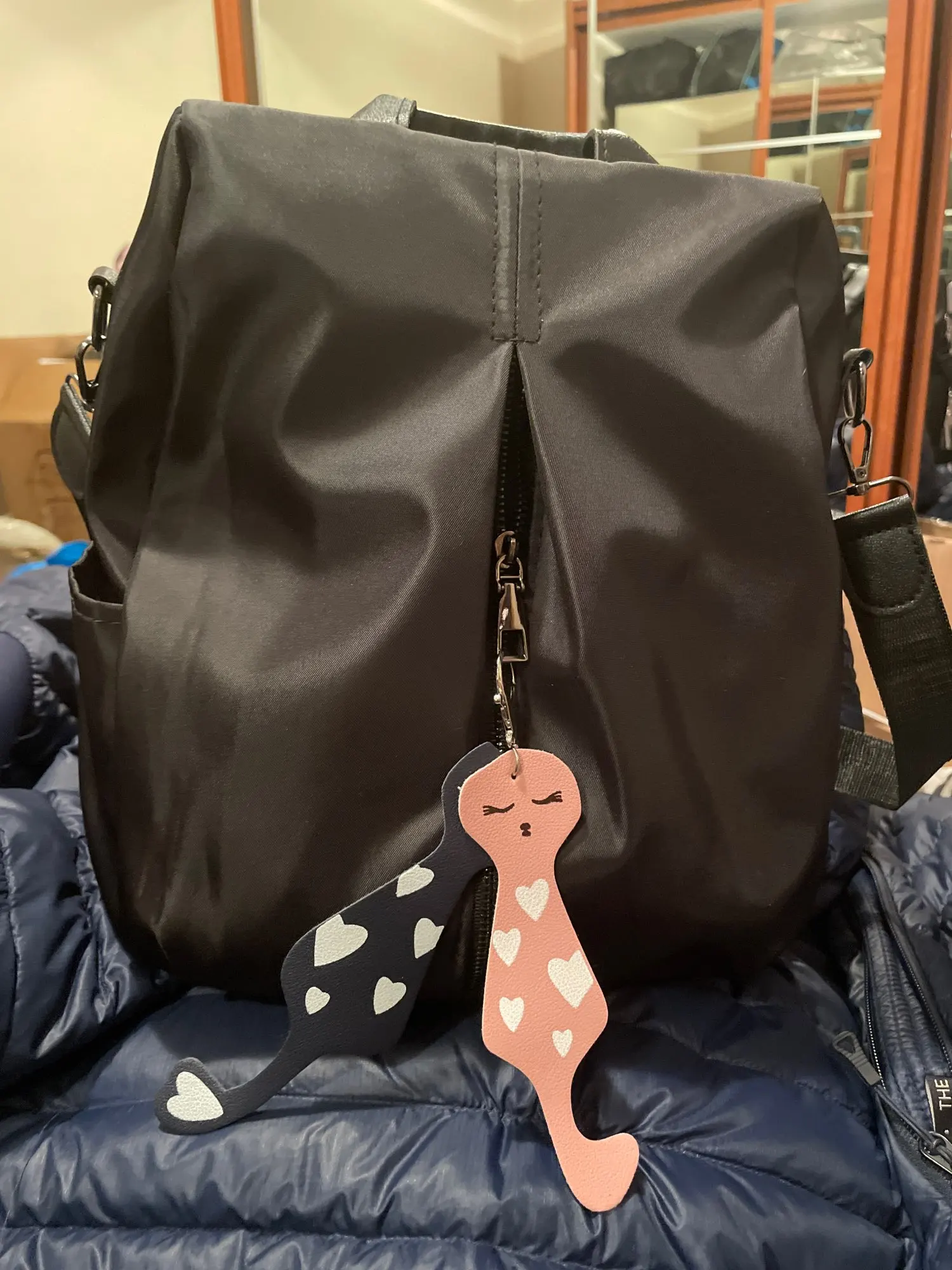 Многофункциональный нейлоновый рюкзак, однотонный большой рюкзак для женщин, женский рюкзак с подвеской в виде кошки, Женские Простые дорожные сумки через плечо
