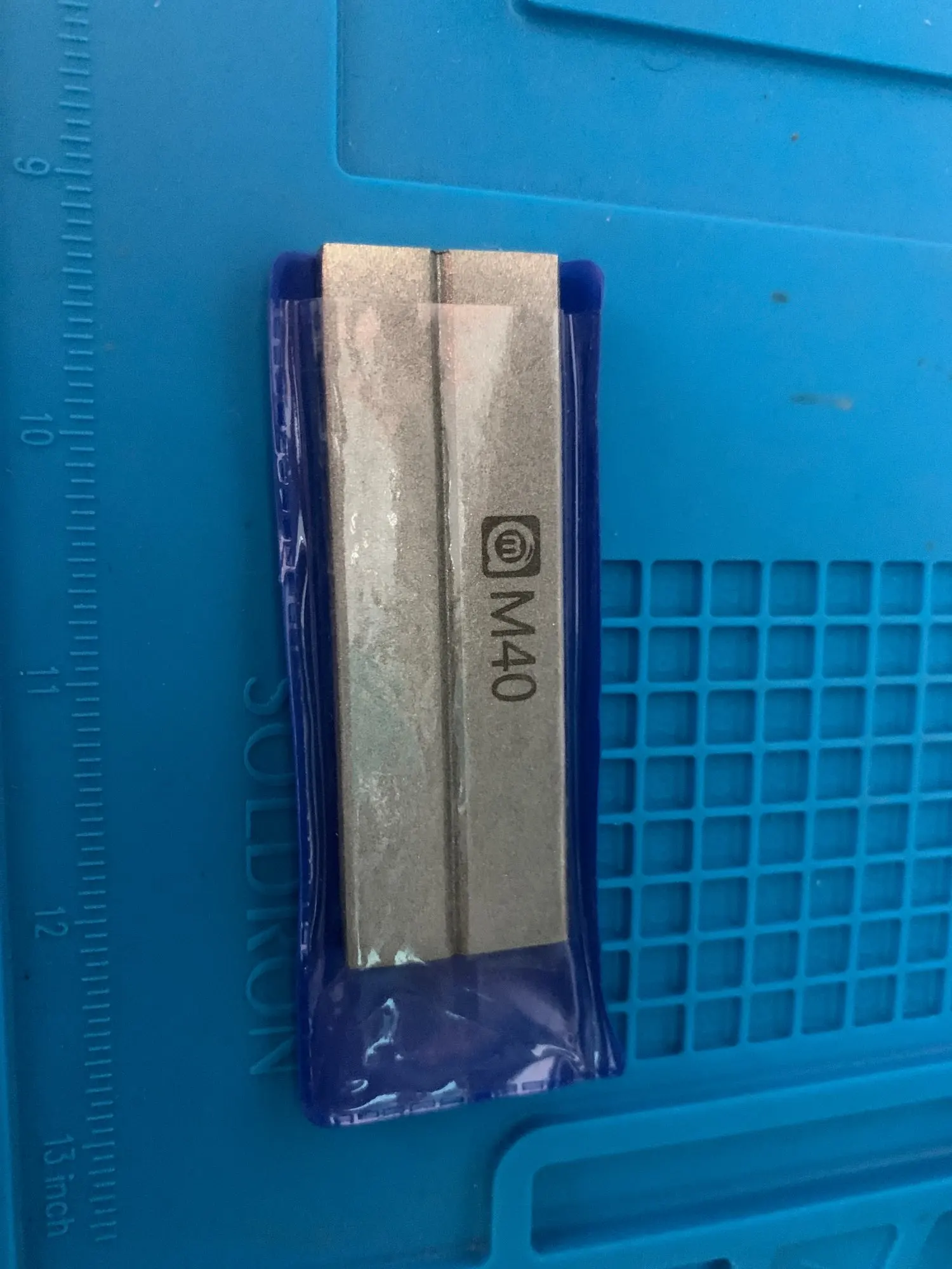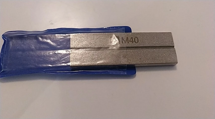 Напыление на бруске грубое, после заточки пинцет весь в бороздках. Наждака лучше !