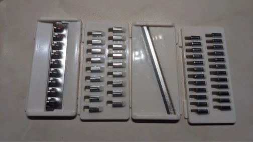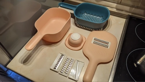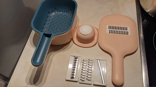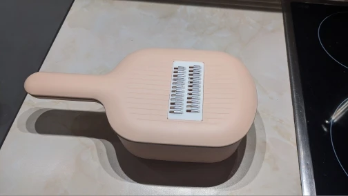 Товар пришёл всего за ДВЕ недели, соответсвует описанию, пока попробовала одну насадку: натирает быстро, но очень много стружки разлетается вокруг, а не в контейнер. Моется достаточно легко