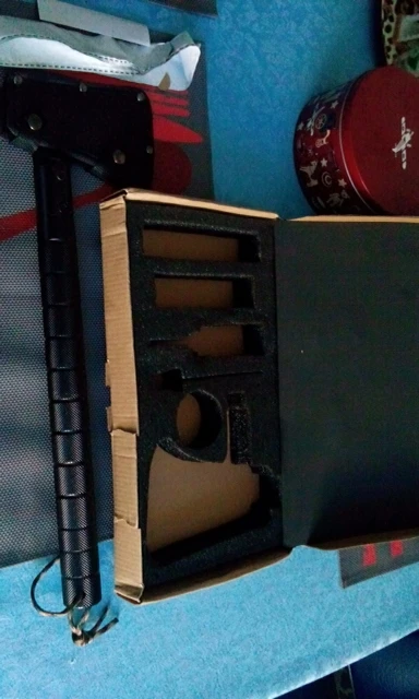 Заказ пришел за 17 дней. Упакован не очень. Коробка помятая сильно. Но на сам топор приятность не повлияла. Пришел в разобранном состоянии. Очень компактно. Все сегменты подходят с небольшим усилием. Что исключает люфт, покрай не мере на первом этапе. Нож и топор острые и готовы к использованию. Рекомендую. Интересная находка дизайна. По весу для колки средних чурюачклв достаточно. Для чего то серьезного слабоват. Но для одиночного похожа сойдёт. Рекомендую.