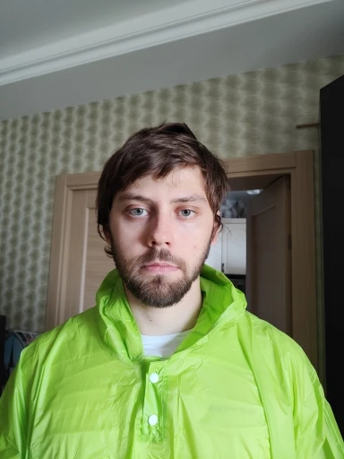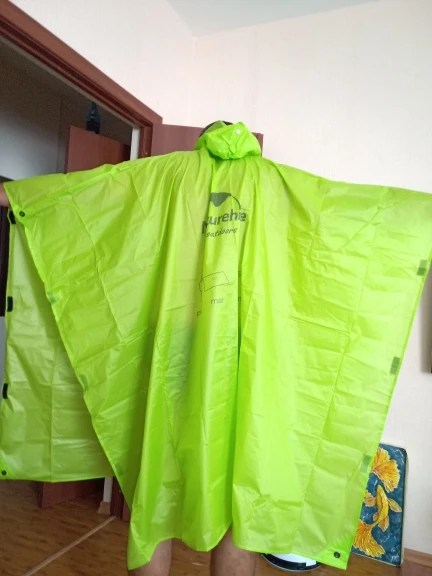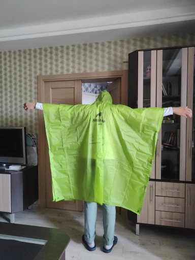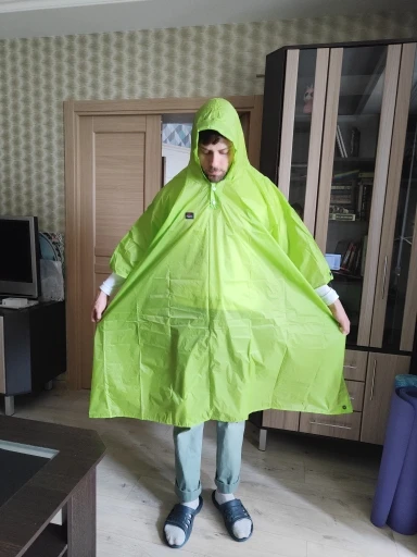 Хорошее. Швы прошиты. Но на рост 165, не более. Я ростом 1.95 и мне он по колено. Но как накидка пойдет