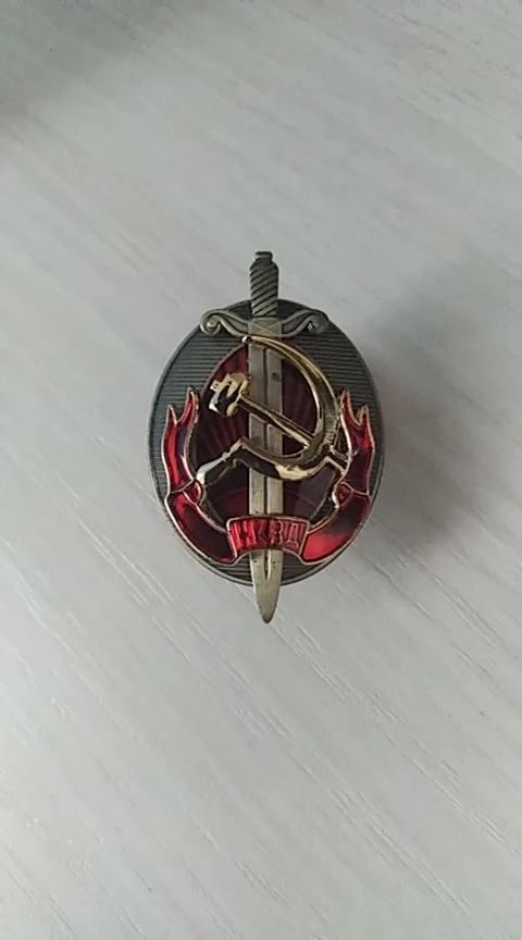 Многослойный медный щит NKVD с эмалью и значком меча, раннее внутреннее управление КГБ