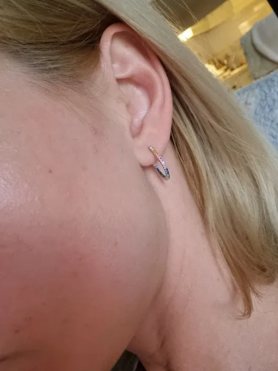 Modian Радуга Цвет сверкающие серьги реальные 925 Стерлинговое Серебро Круглый циркония серьги-кольца для женщин Роскошные свадебные ювелирные изделия