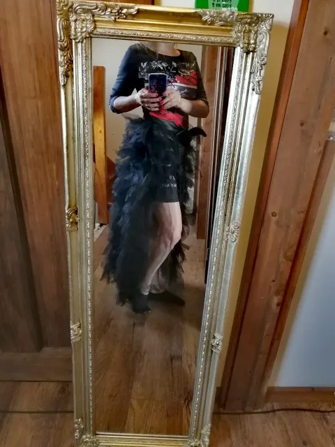 не закрывает спереди как на фото((( хотя на свой S, взяла M, пришлось поддевать черную атласную юбку. и на мой рост 160 в самый раз, для девушек повыше уже будет не до пола