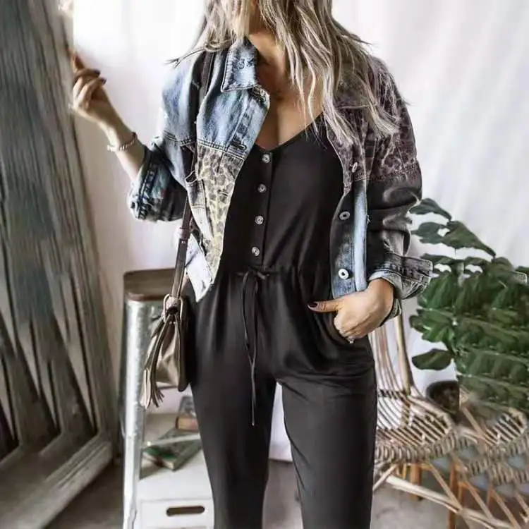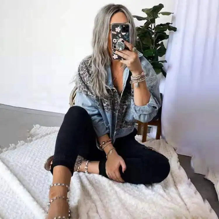 Модные джинсовые куртки в стиле пэчворк с леопардовым принтом, женские куртки 2022, весеннее пальто, уличная одежда, повседневное пальто с кар...