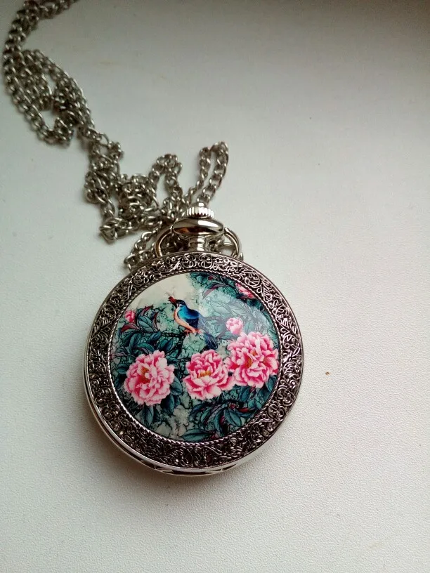Модные кварцевые карманные часы с цветочным рисунком птицы, мужские и женские часы, подарок