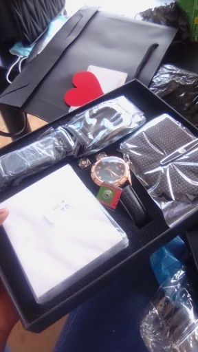 Модные мужские часы, подарочный набор, высококачественный ремень, деловые кварцевые наручные часы, складной кошелек, галстук, запонки, зажи...