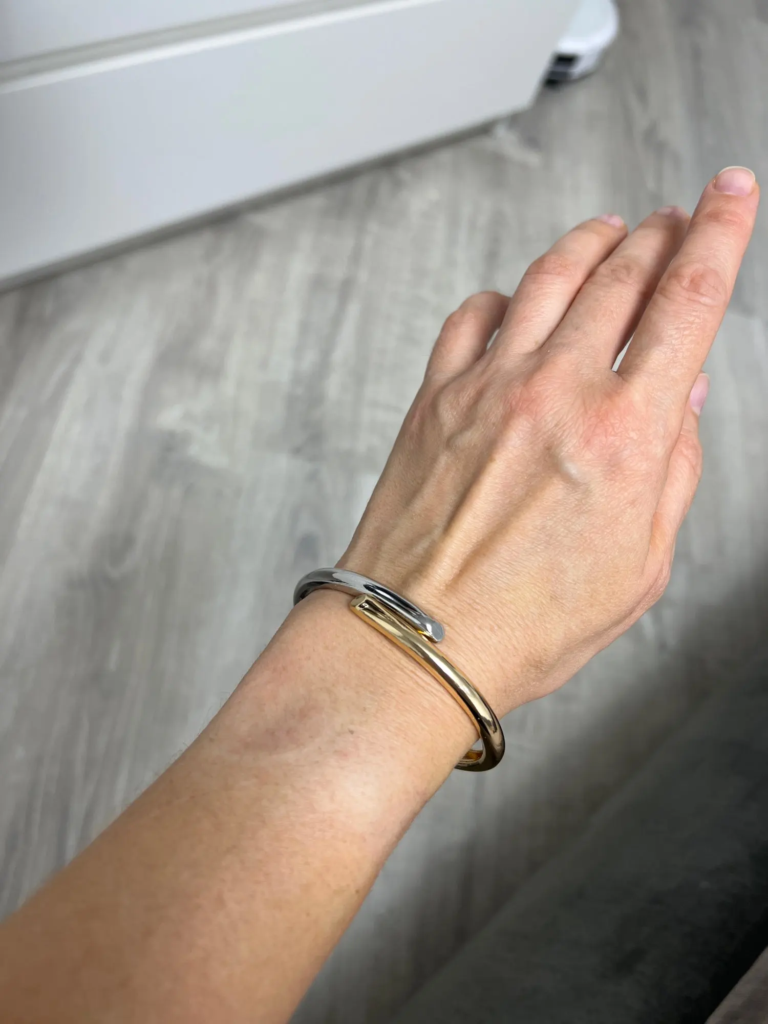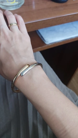 Браслет на руке смотрится стильно, покрытие хорошее, ровное, пружина достаточно сильная. Выглядит дороже своей стоимости