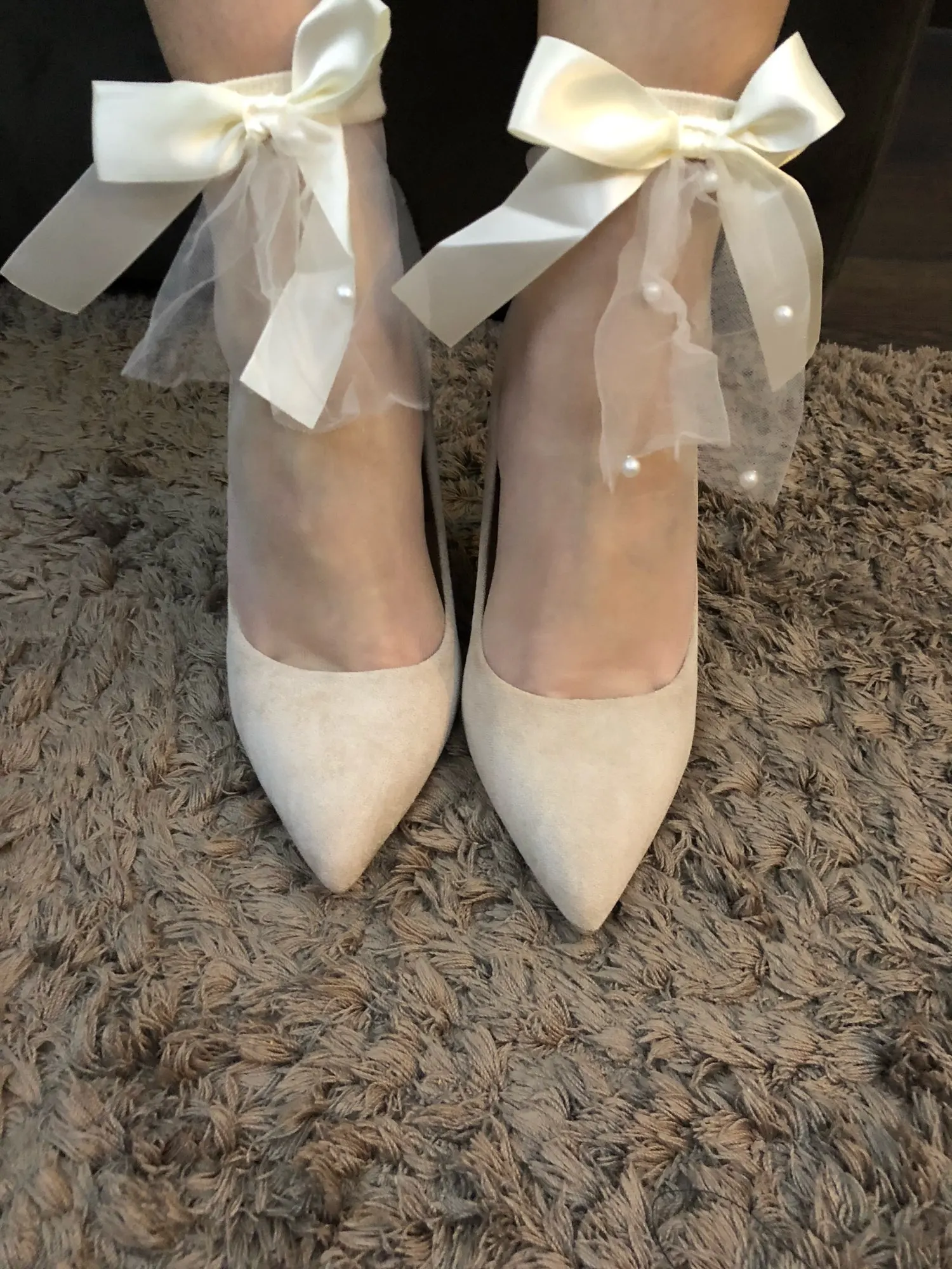 Модные ультратонкие носки, летние женские прозрачные кружевные однотонные короткие носки, милые винтажные сетчатые носки из стекловолокна с жемчужным бантом