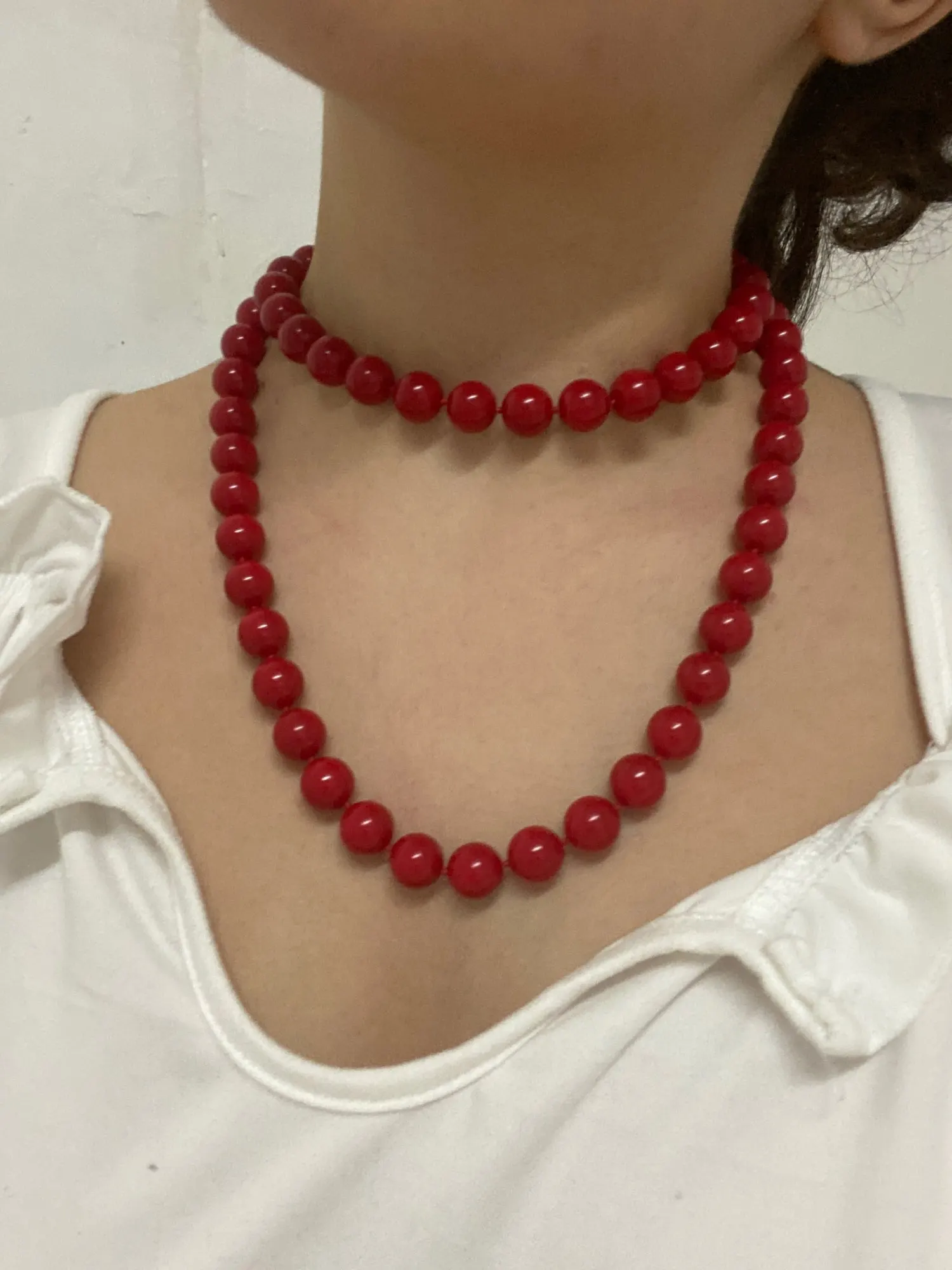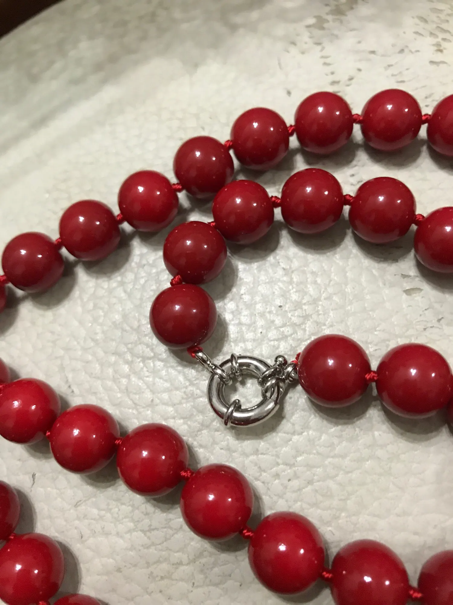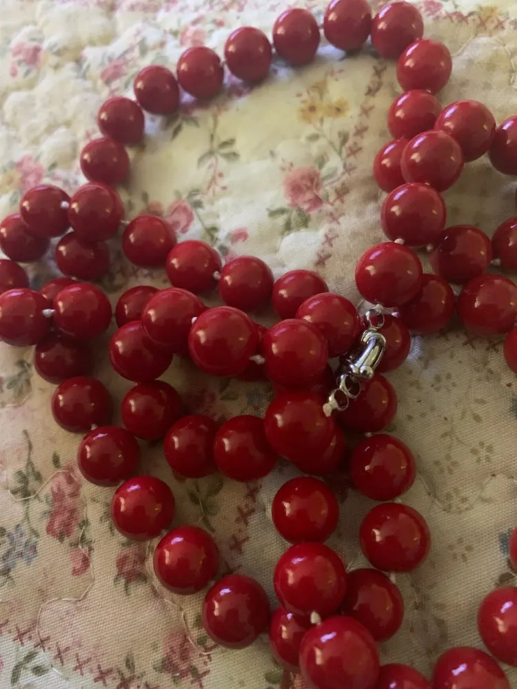 крупные бусины , нитка красная как на картинке. Спасибо.