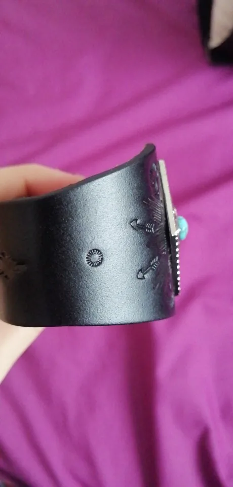 На мою женскую руку (мой вес 52, размер 42) большой. На середине предплечья его не поносишь (только там как раз). Качество сначала кажется хорошим, но когда я его согнула чтобы застегнуть, верхний слой слегка потрескался.