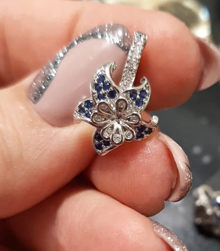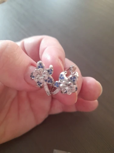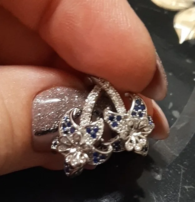 Серьги отличаются от предлагаемых на сайте. Выглядят блеклыми и белыми. Голубые камешки мелкие и еле заметны - если только приглядеться....