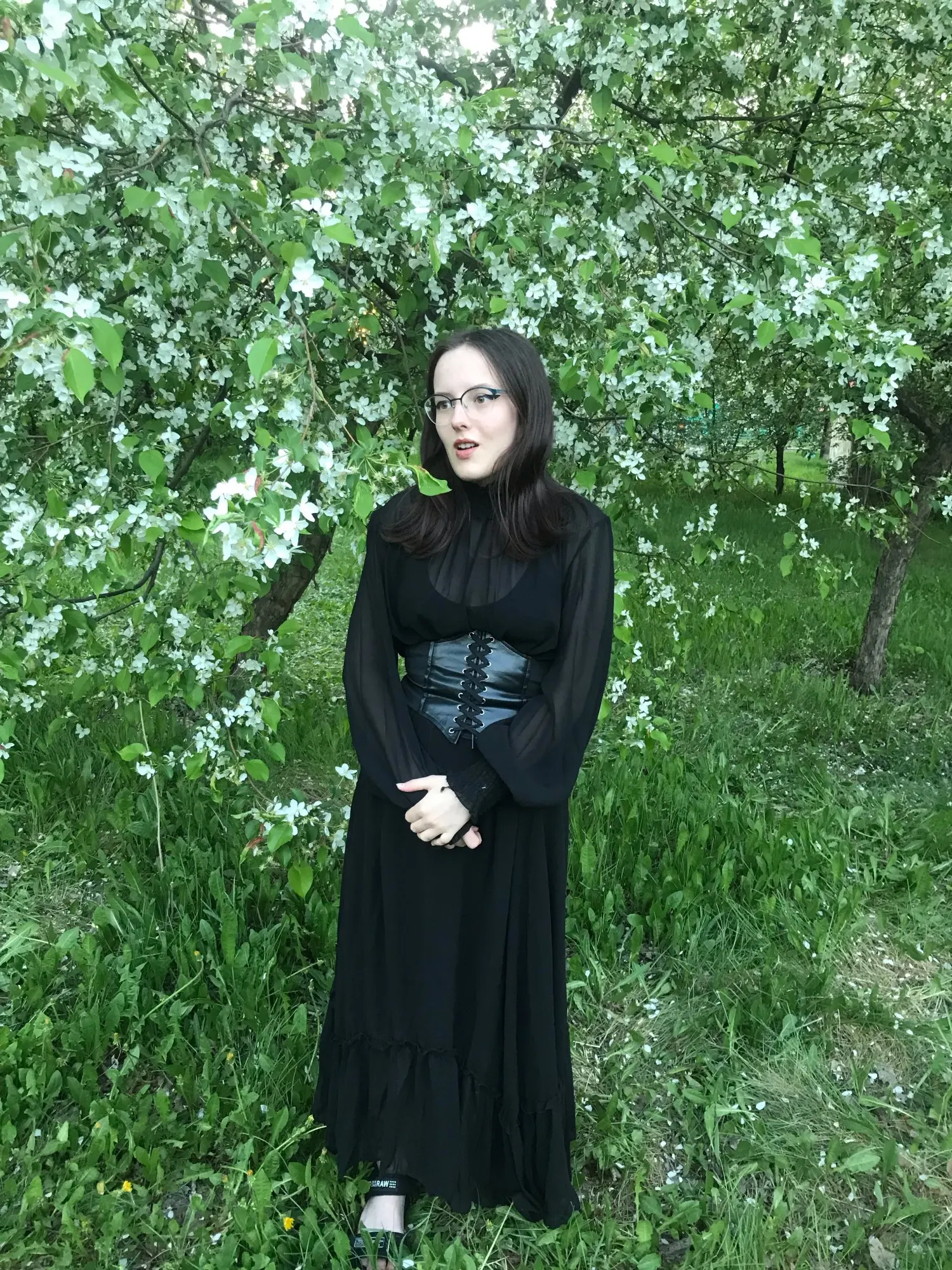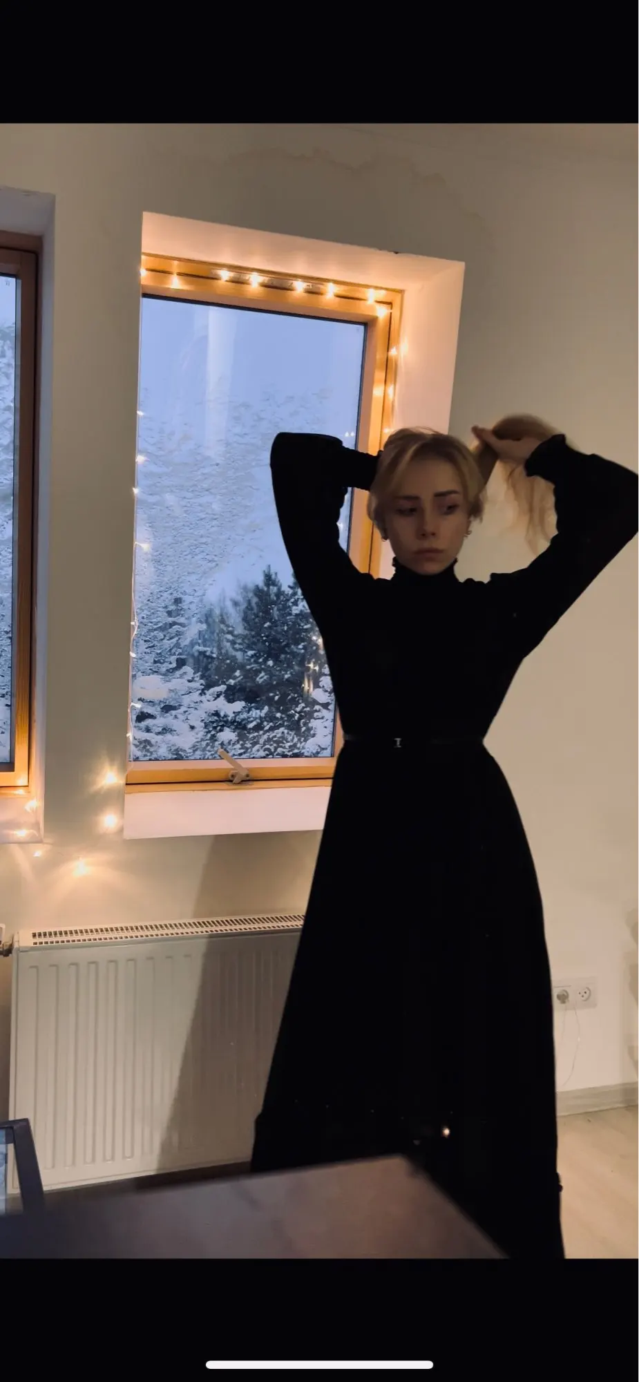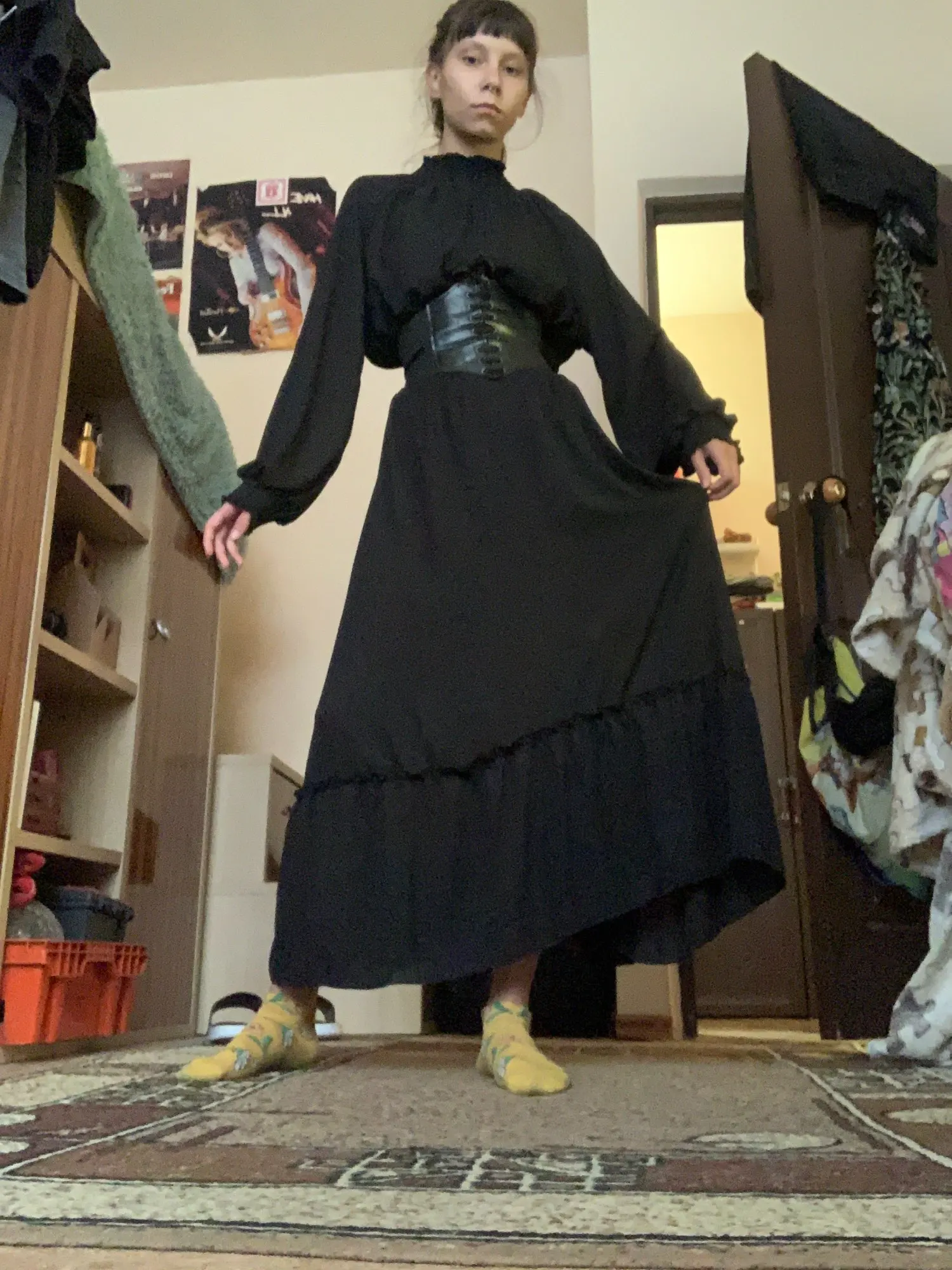 Модное женское черное платье с длинным рукавом и оборками, ТРАПЕЦИЕВИДНОЕ женское корейское цельнокроеное милое офисное весеннее платье макси для женщин
