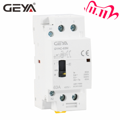 Модульный контактор переменного тока GEYA GYHC, 2P, 40 А, 63 А, 230 В
