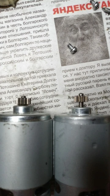 Моторчик подошел и теперь успешно трудится с шуруповерте Бош. Встал как родной. Шестерня тоньше чем на оригинале примерно на 1мм. Пока полет нормальный. В подарок запасные щётки.