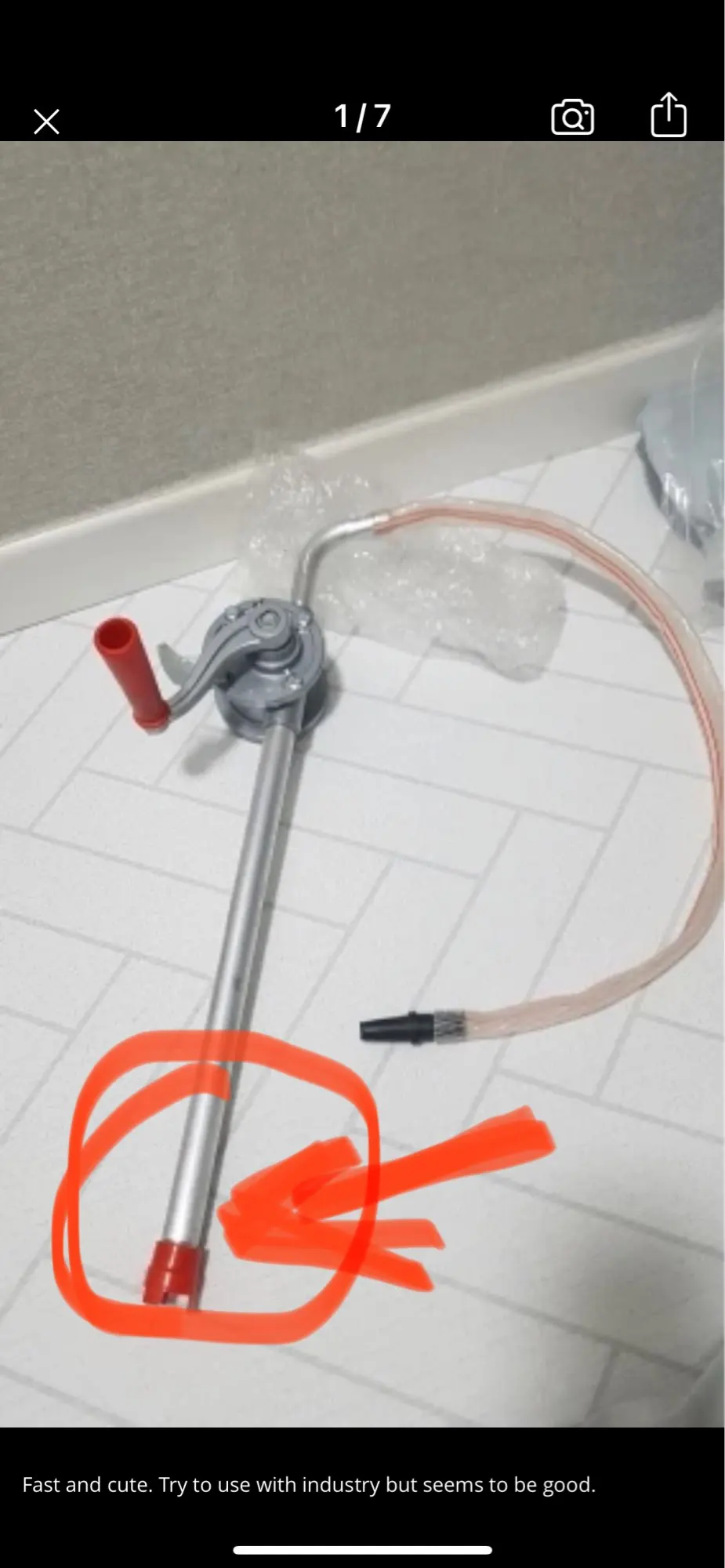 В описании товара есть труба 70 см, трубу не прислали Производительность не соответствует заявленной, нет крепления для бочки, что делает насос не пригодным и не удобным в использовании. Жалко потраченных денег. Люди не покупайте этот насос.