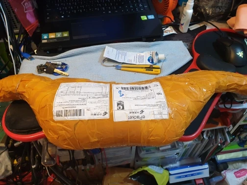 Всё хорошо, при транспортировке края упаковки были повреждены, но на руль были одеты пластиковые колпачки, так что сам товар повреждений не получил.