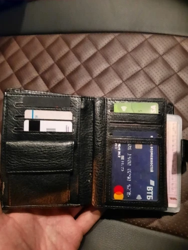 кожа явно искусственная,но приятная. отделение под паспорт и прочие документы. лишним не пахнет. доставка быстрая. дошло всё целое,лишних ниток не было.