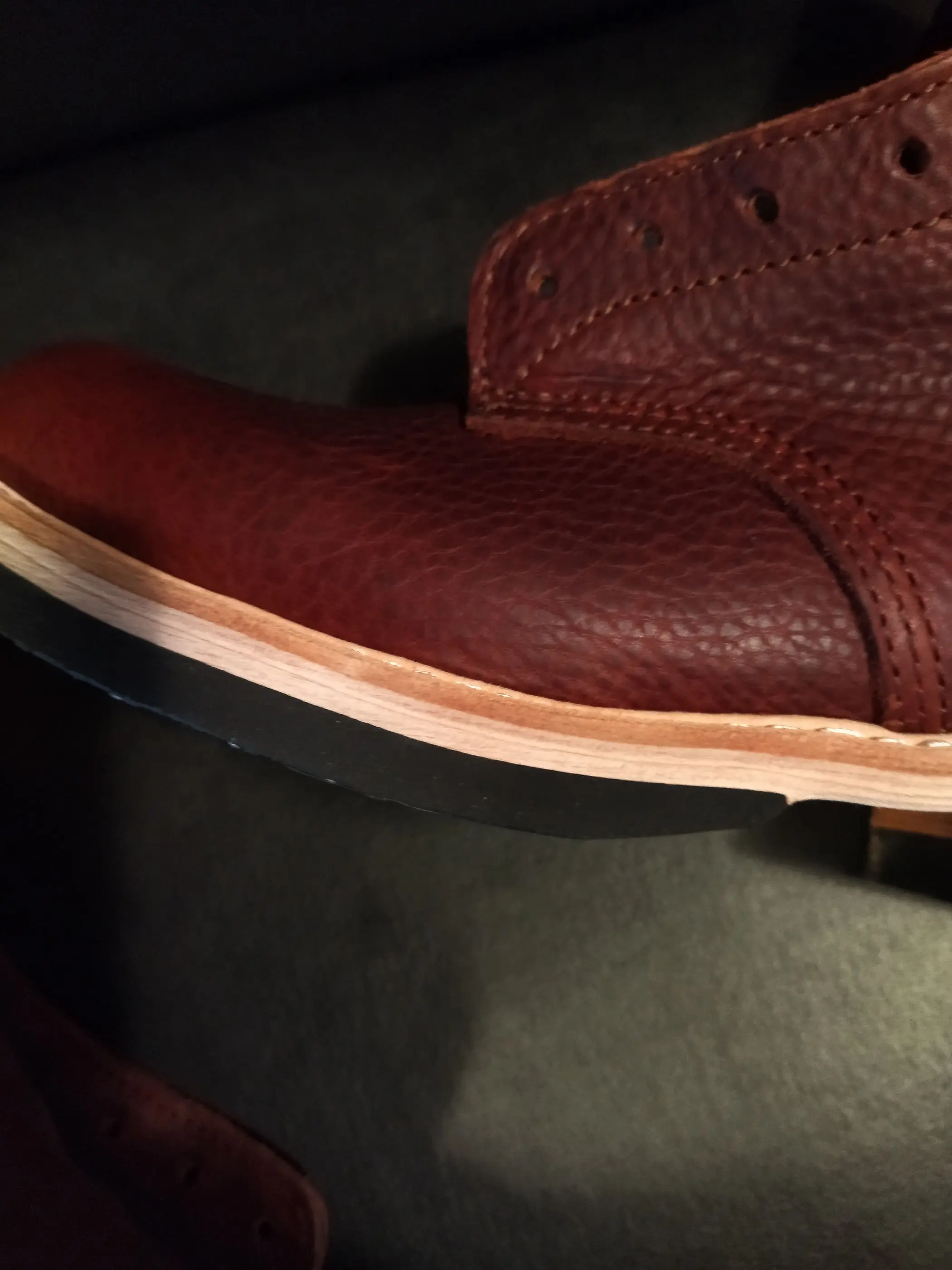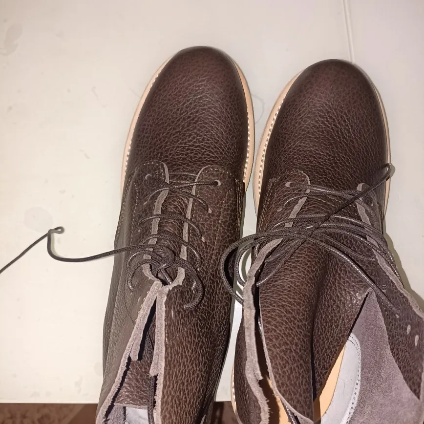Прямо охеренные ботинки! Ал, как всегда, красавчик)) Спросил у него, есть ли зимняя обувь, на что он ответил: "Выбирай любые, давай 15$, и будут тебе зимние". Реально, те же ботинки, но с чудесным белым мехом овцы) Качество просто бомба, кожа реально около 3 мм, удобные и практичные: если даже царапаешь, выглядит так, будто это было задумано)) Доставка dpd.