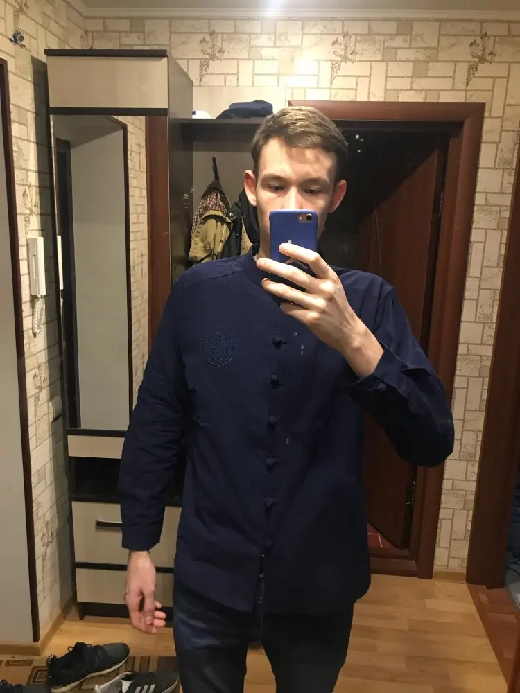 Доставка до Москвы 2 недели. На рост 176 и вес 74 XXL подошел хорошо, при большой талии около 100 см. Материал необычный: очень тяжело разглаживается, при этом рекомендуется стирать вручную и гладить на невысокой температуре. На ощупь ткань грубоватая, но не вызывает неприятных ощущений, дышит. В целом, рубашка хорошая и заслуживает 5 звезд.