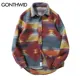 Мужская винтажная рубашка с длинным рукавом, черная клетчатая Повседневная Уличная одежда в стиле хип-хоп, с застежкой на пуговицах, большие размеры, зима 2022
