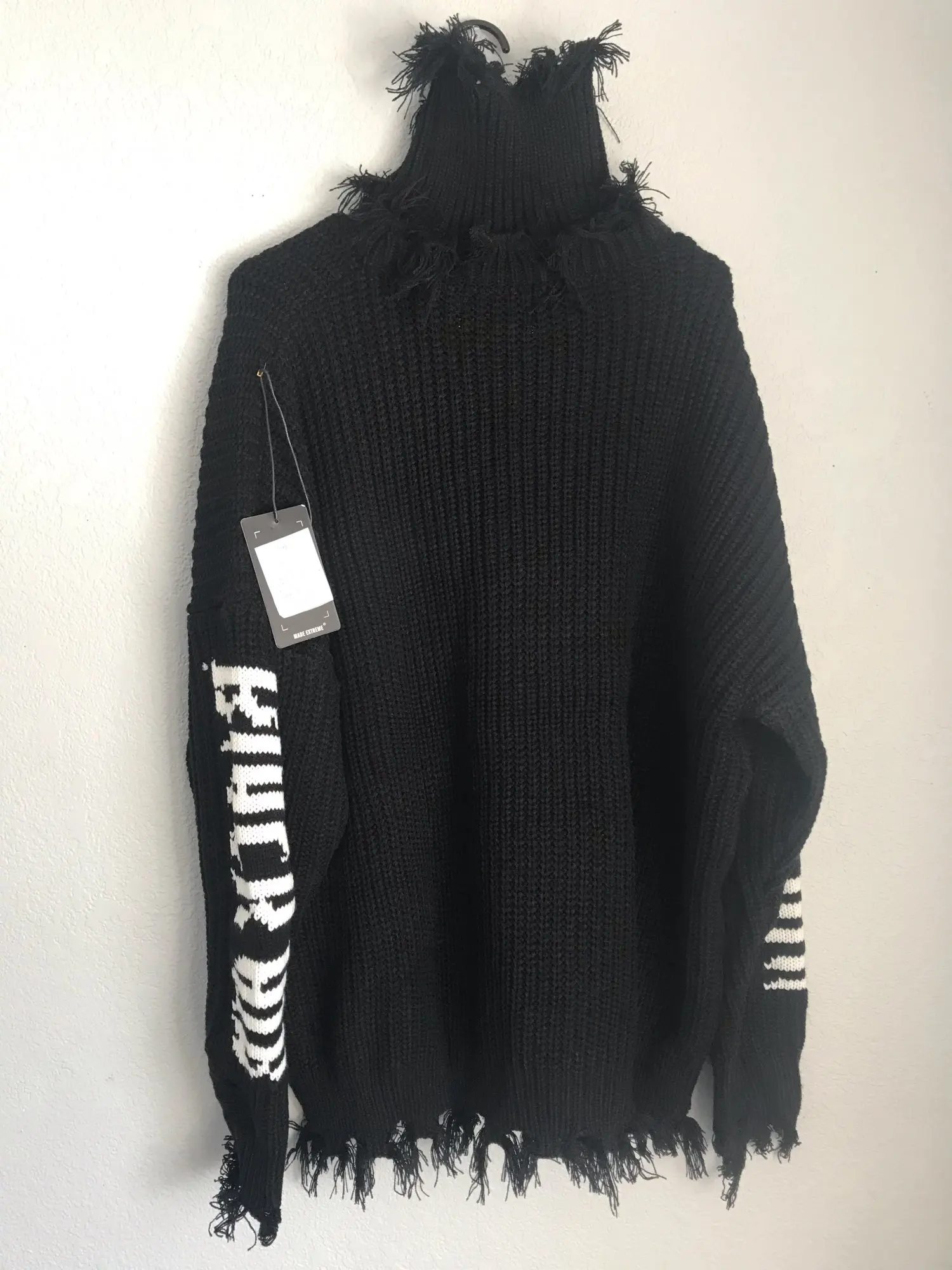 Мужская вязаная водолазка большого размера, винтажный свитер с бархатной подкладкой в стиле панк-рок, парные рваные пуловеры оверсайз в сти...