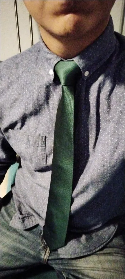 на самом деле галстук тёмно-синий, не такой яркий.