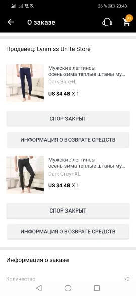 Доставка до Калуги около 2 недель. Брала за 2.42$ с купоном (примерно за 192 руб). По качеству отличные, без брака и без постороннего запаха. Внутри утеплены. Но маломерят на размер точно, а может и больше. По совету продавца заказал XL (рост 182 см, объём бёдер 100 см, вес 87 кг). Но они оказались в обтяжку - носить можно, но в поясе туговато немного. Зато не видно под одеждой, как лосины выглядят) Возможно потянутся ещё в процессе ношения. Хорошо, что хоть по росту не короткие. Муж сказал, что тёплые, в -10 не замёрз с джинсами обычными.