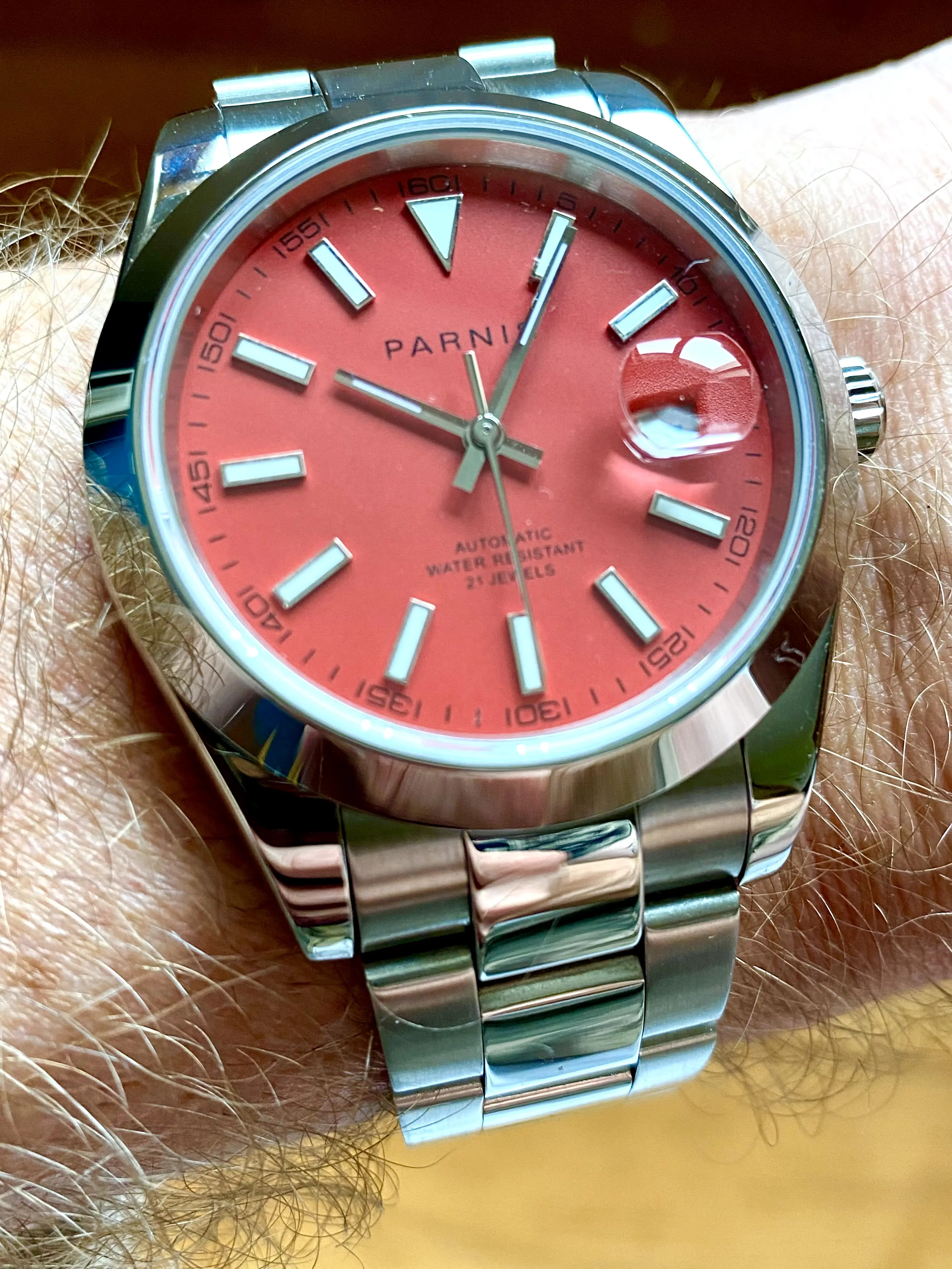 Мужские наручные часы Parnis, модные автоматические механические часы с черным циферблатом и календарем, 21 драгоценность, 2022