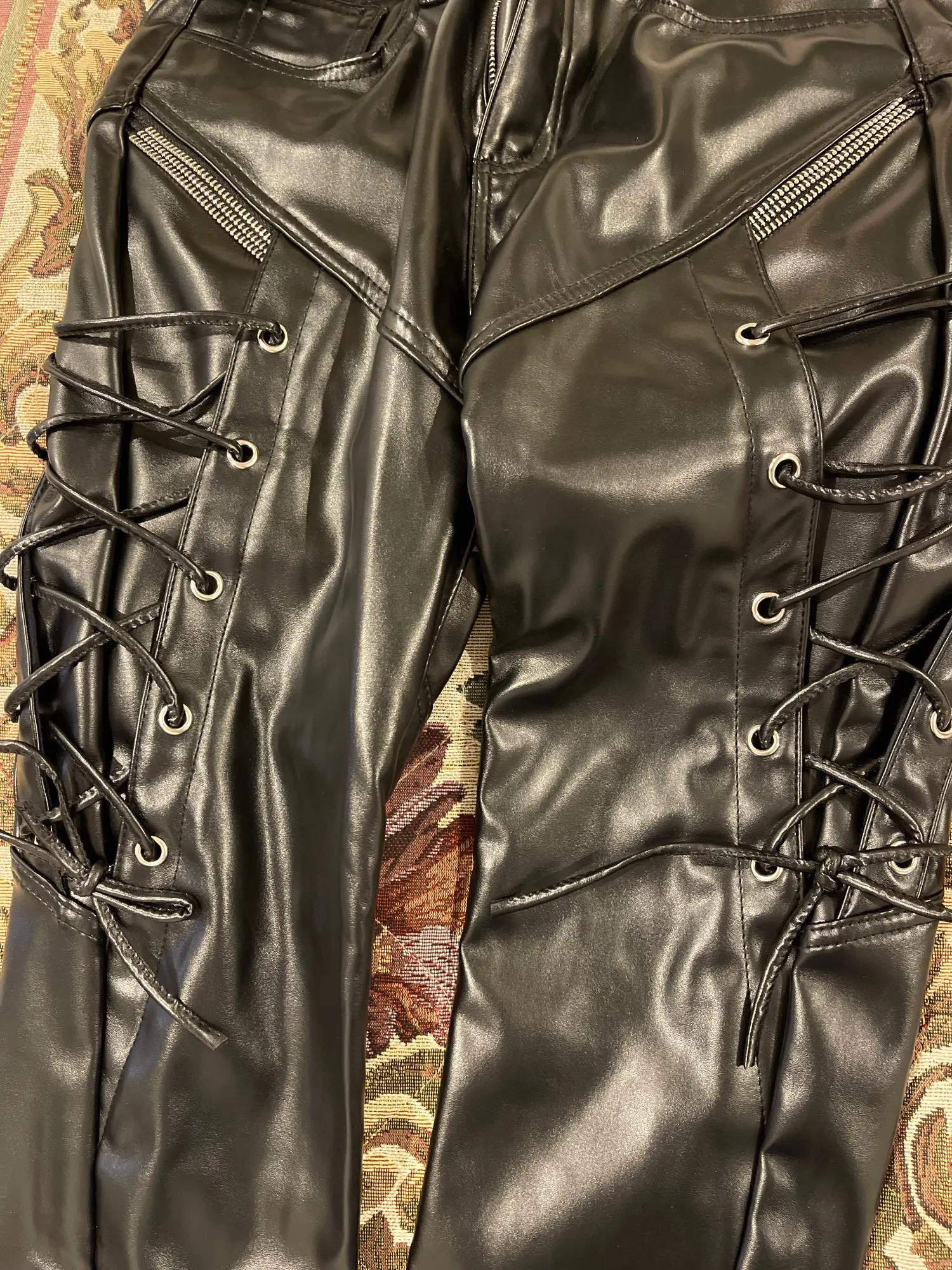 Красивые штаны, эластичные, мягкие. Есть пара незакреплённых ниток. Брал размер 33 - мало, нужно 34 размер если не 36 (рост 184, 85кг, талия ≈90, нога ≈104)