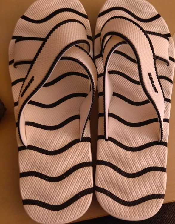брал такие шлёпанцы в 2018 году за 300р, стёрлись только в этом году, модель этого года немного отличается: более узкая м жестковатая. посмотрим на неё через сезон)