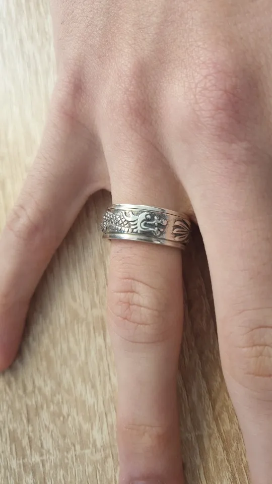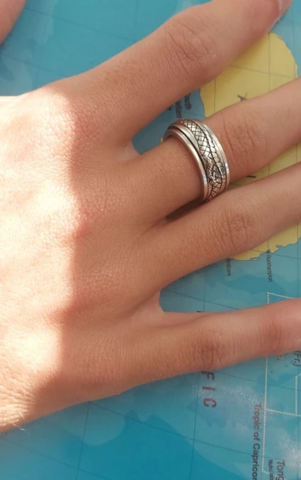 По размеру угадал, серединка узорчатая оказывается крутиться. Очень понравилось колечко. Серебро.