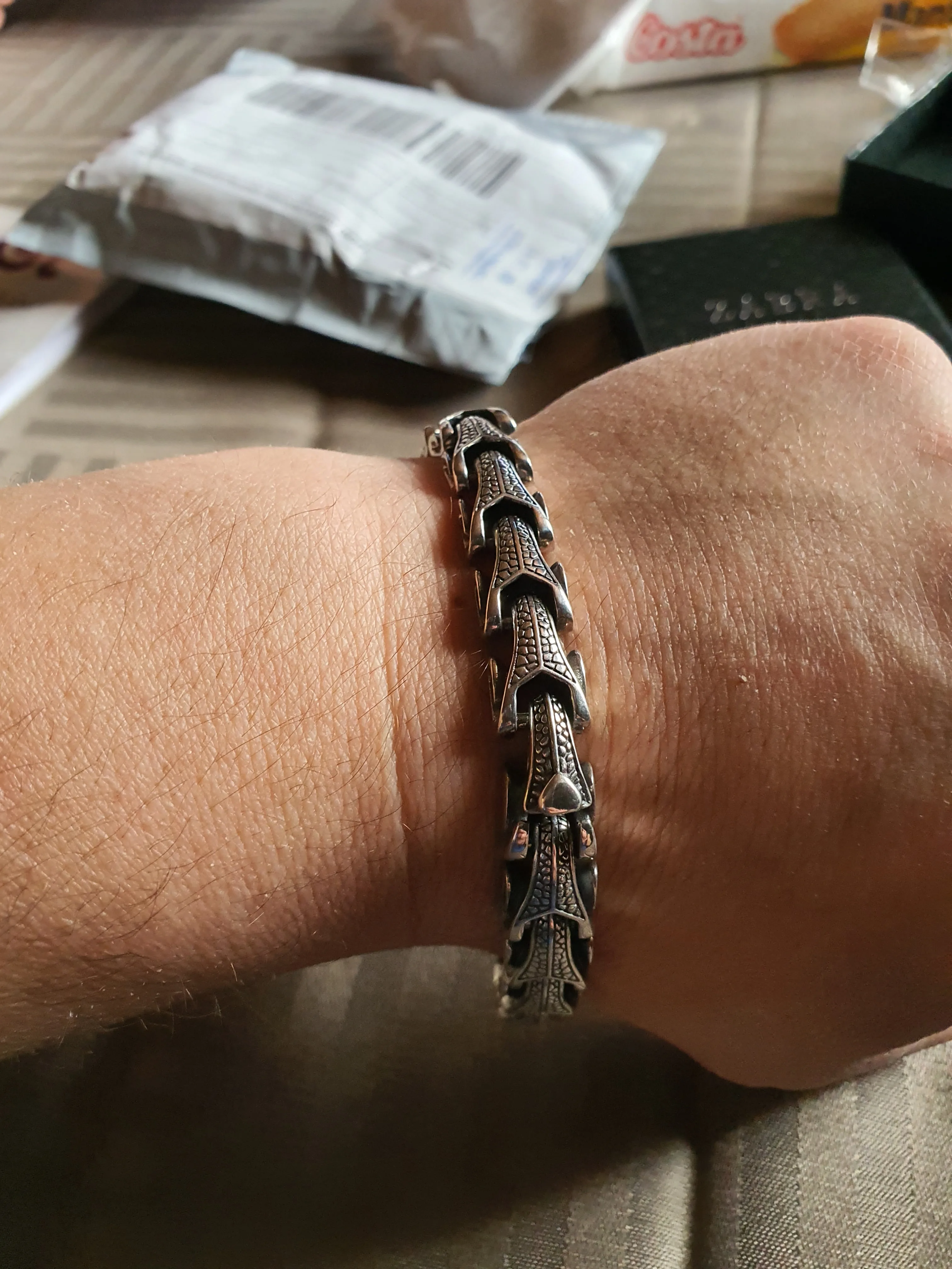 заказал 24.02. забрал 07.03. посылка на всем пути отслеживалась. Теперь о главном, после того, как забрал посылку, сразу пошел к ювелиру. Мастер сделал надпил в незаметном месте и проверил реактивами, сказал что это 100% серебро. При длине 22,2 см весит 70,5 грамм. работа сделана отлично. нет никаких лишних наплывов и царапин. Все приходит в коробочке. В подарок положили мягкую тряпочку и какую то мягкую пилочку, видимо для полировки. Продавцу можно доверять. Изделием очень доволен! Большое спасибо!