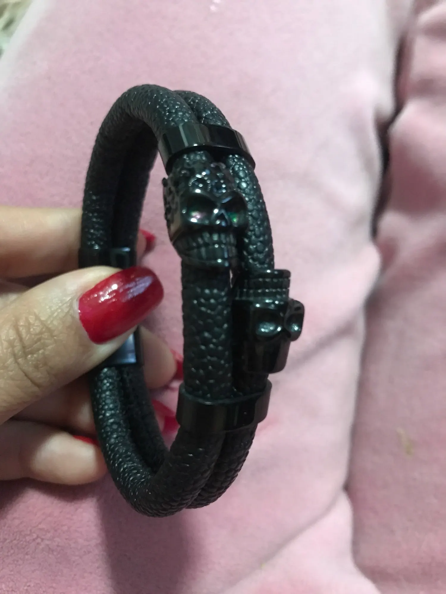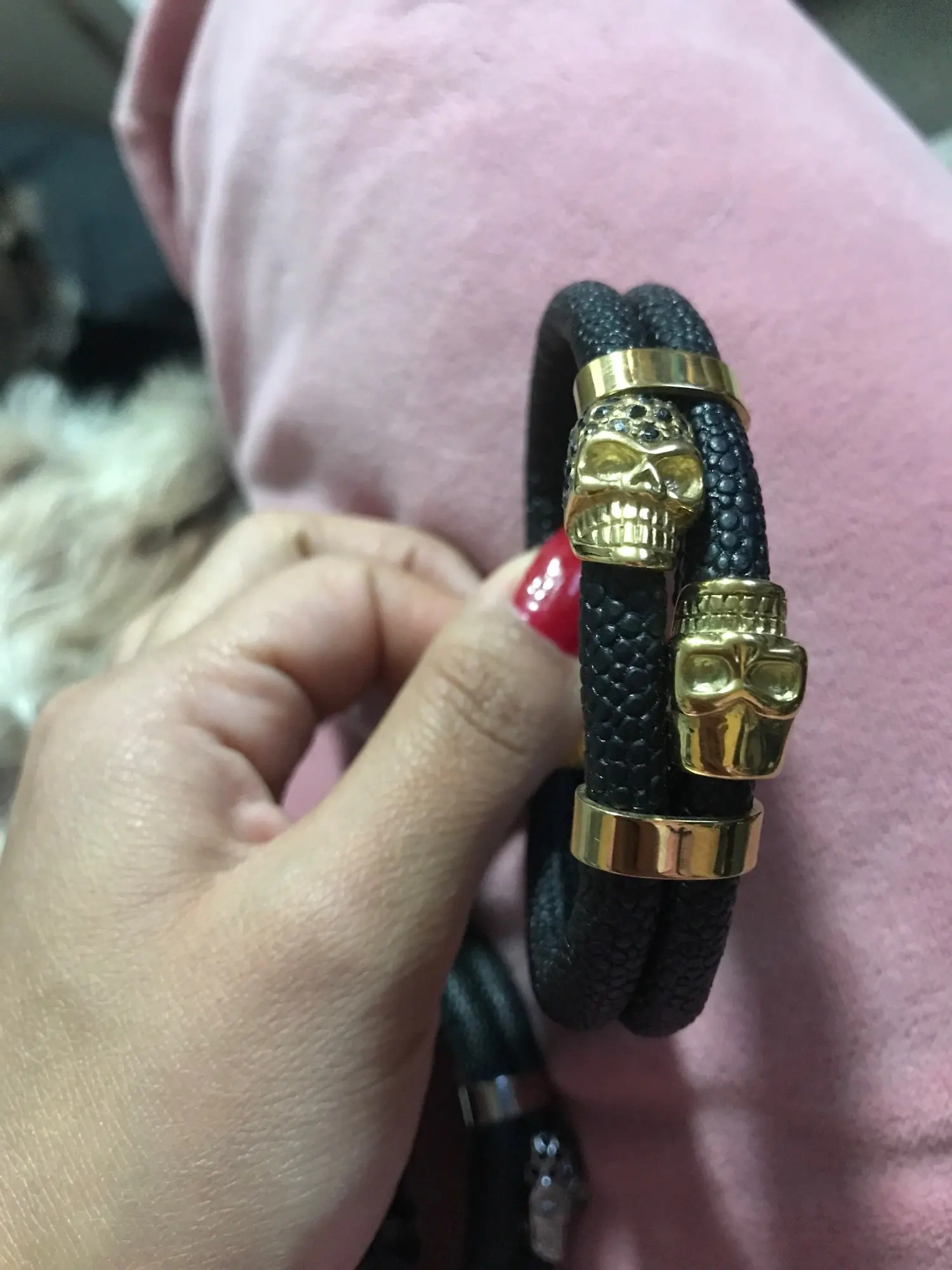 Genuine leather skull bracelet