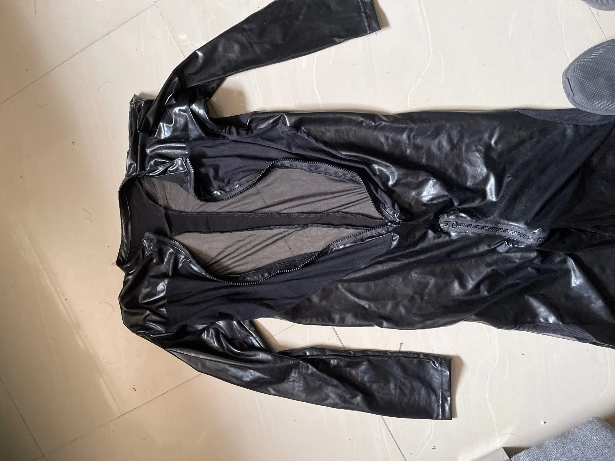 Мужской брючный костюм из лакированной кожи, сексуальный комбинезон на молнии с длинными рукавами и открытой промежностью, Комбинезон Зентаи размера плюс 3XL
