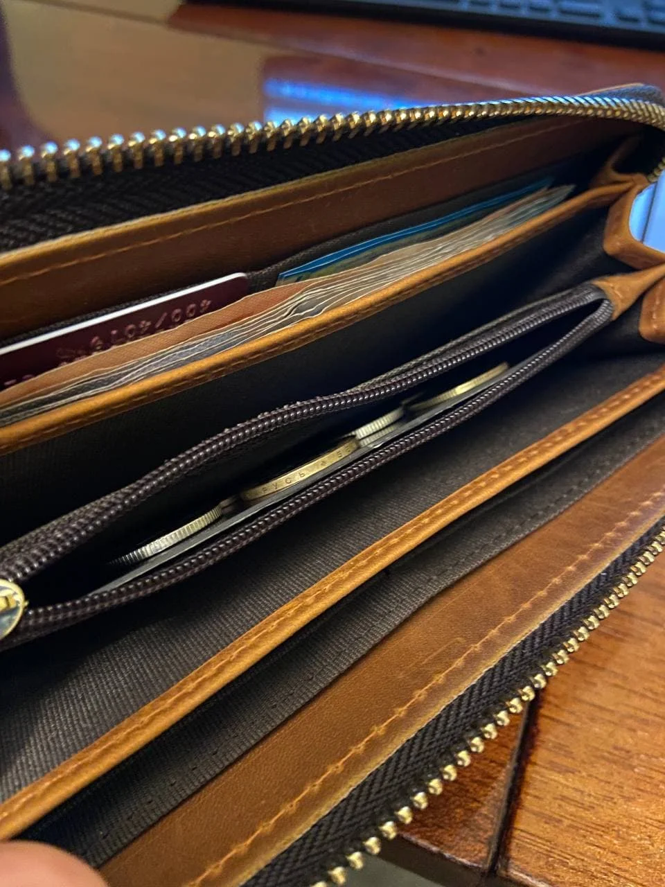 хороший кошелёк, по виду кожаный. прошит качественно. продавец отправил посылку быстро. товаром довольна, продавца рекомендую.