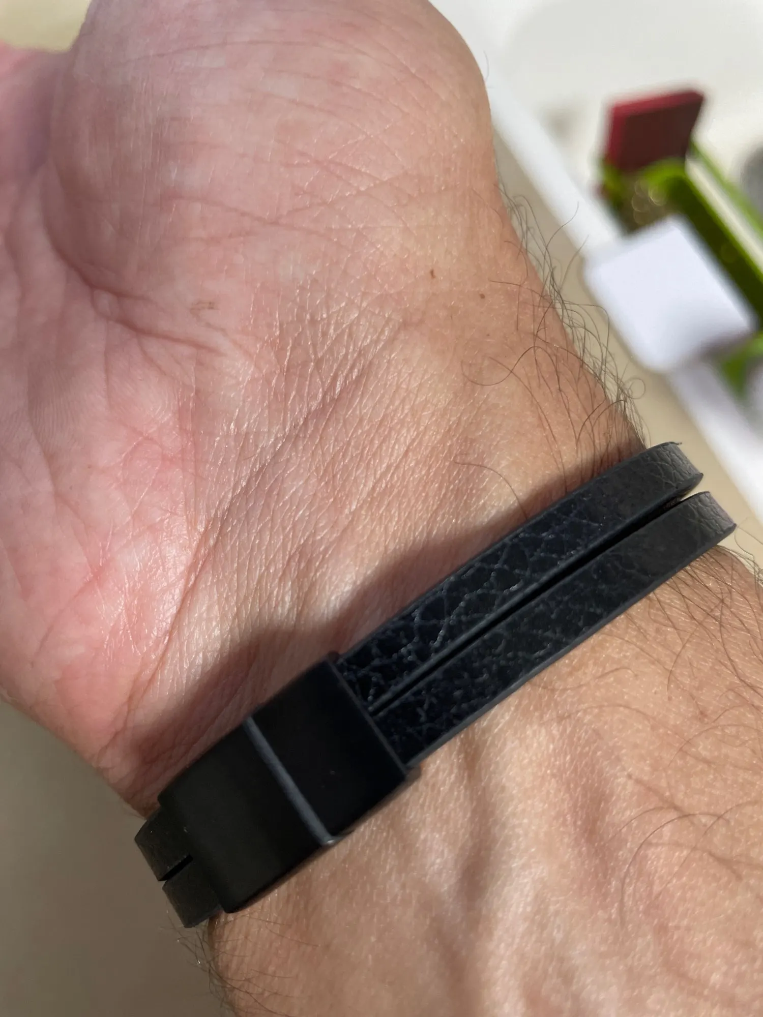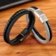 Мужской кожаный браслет с кожаной текстурой и кнопкой из нержавеющей стали