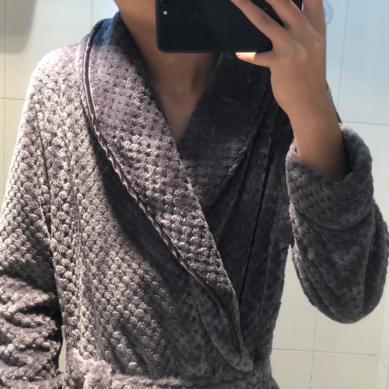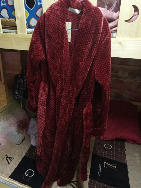 Халат мягкий, тёплый без посторонних запахов на рост 1,80 размер XL подошёл идеально. Сняла одну звезду, за то что сбоку шев немного тянет и халат чуть морщит с этой стороны.