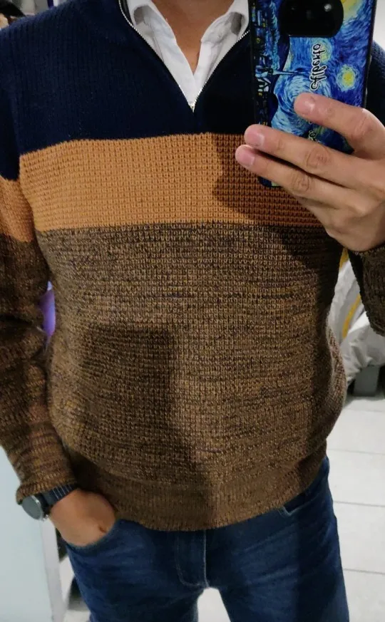 Мужской трикотажный пуловер с длинным рукавом и V-образным вырезом