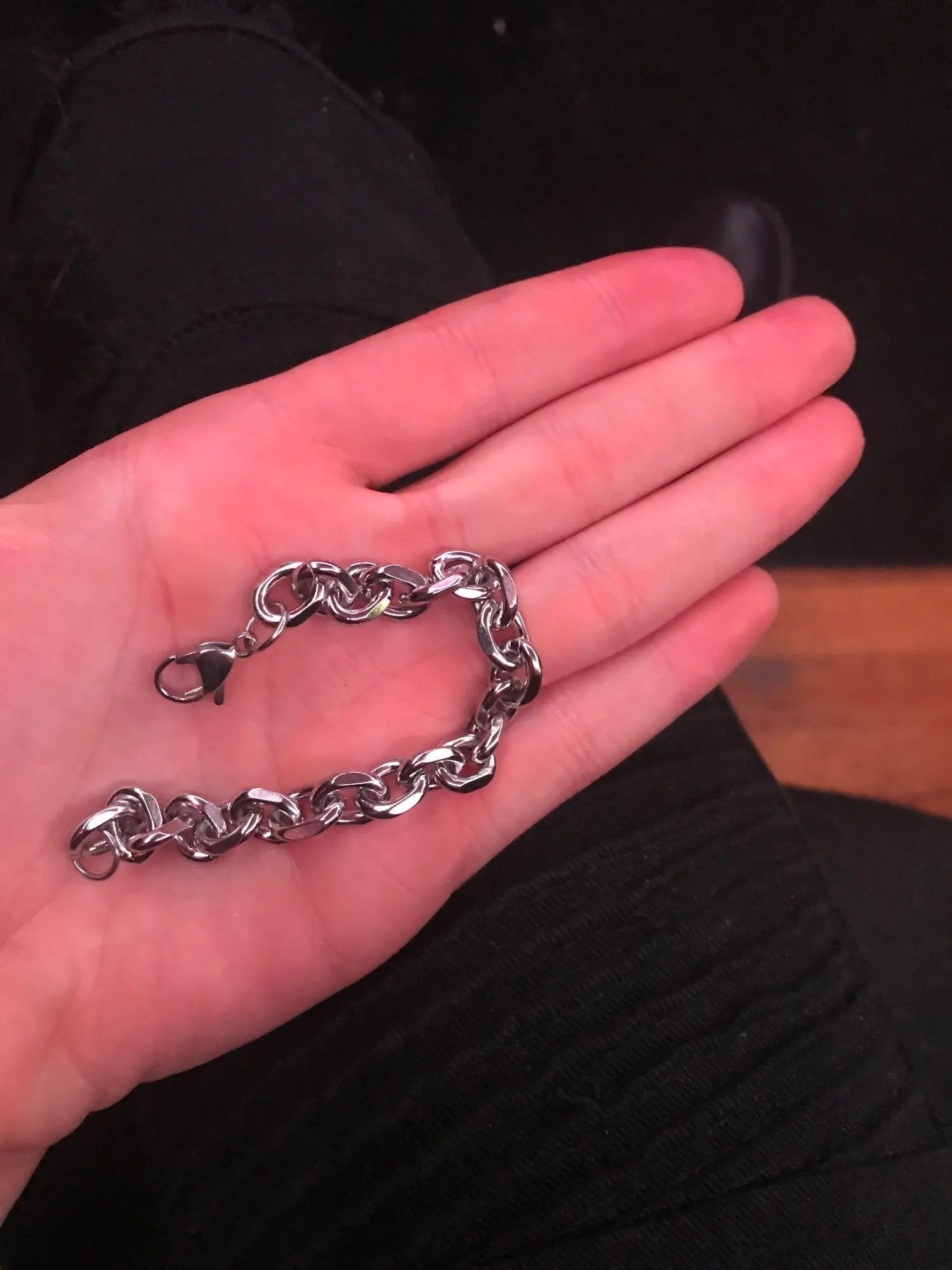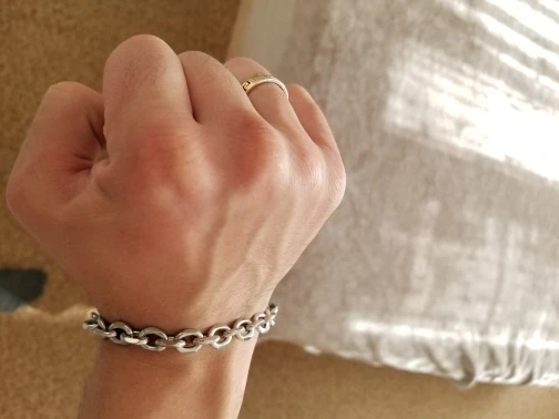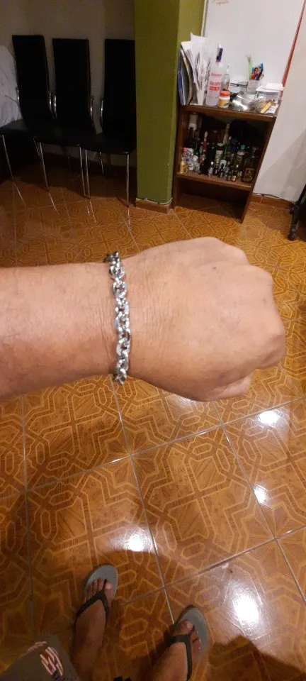 выглядит классно, рад что взял ни в притирку, из-за звеньев (самый большой браслет) съедается 1-1,5см объема. на запястья 18, взял 20см, сидит супер, даже есть запас если от жары запястье станет больше. дошел за 7дней,продавца рекомендую!