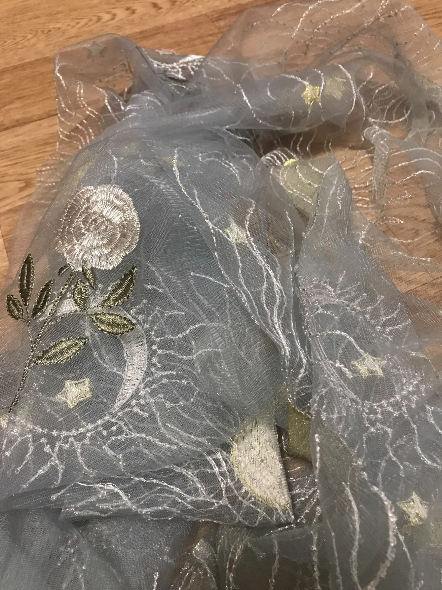 Мягкая синяя сетчатая кружевная ткань с цветочной вышивкой Звезды Луны для рубашек, белого, серого, розового, бежевого цвета, для двора