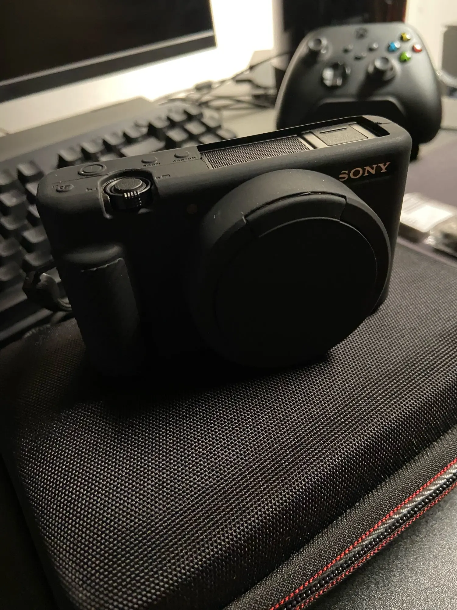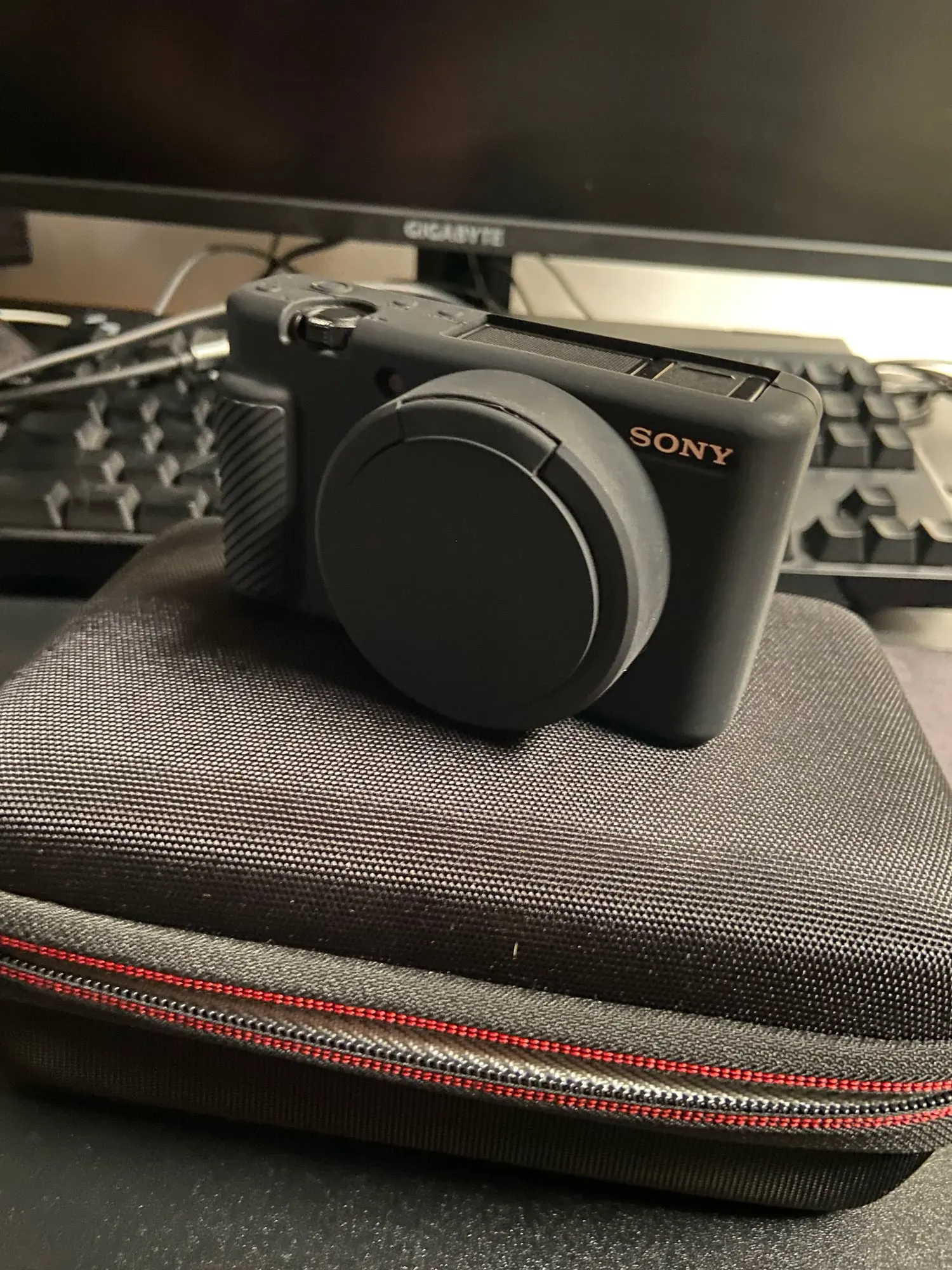 чехольчик тонкая резина.вспышка с ней не открывается надо выковыривать.крышка на объективе не фиксируется,а просто висит.в общем купил,что бы выкинуть.с продавцом не общался,прилетело быстро.
