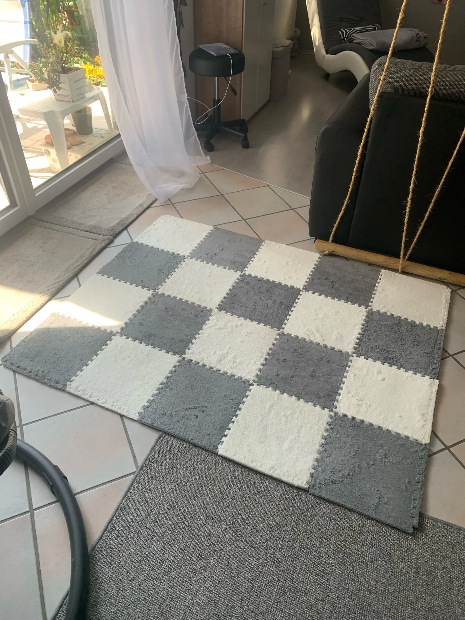 Прекрасный, мягкий коврик. Собирается легко. Очень тёплый и лёгкий, не скользит по полу