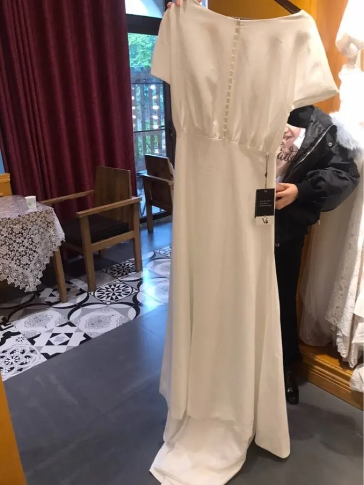 Мягкое атласное ТРАПЕЦИЕВИДНОЕ простое свадебное платье с жемчугом для невесты свадебное платье Реальный образец фото фабрика