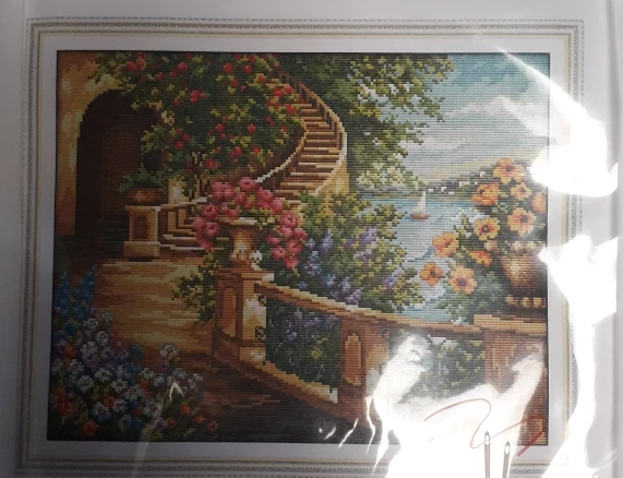 Описание товара точное, канва оверложена, печать клетка в клетку, ниточек много, качество хорошее, цвета яркие, схема на глянцевой бумаге крупная и понятная для работы, две иголки. Спасибо продавцу за работу и качественный товар!