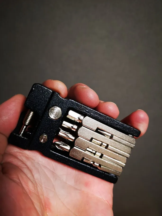Жала инструментов из хромированной стали - это подозрительно, посмотрим, как себя покажет в деле. Нет ключа на 15 для снятия колеса. В целом конструкция остроумная.