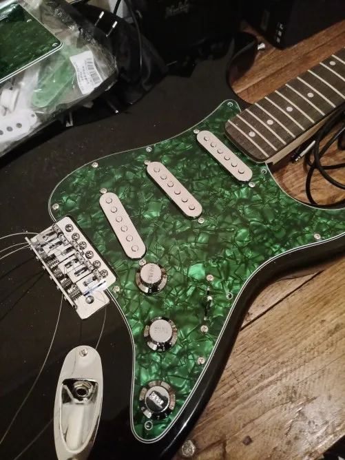 Набор из 11 отверстий для гитарной накладки Strat SSS + 52/52 мм одна катушка крышки для пикапа + ручка 2T1V + 5-ходовой переключатель, наконечник для гитарных деталей