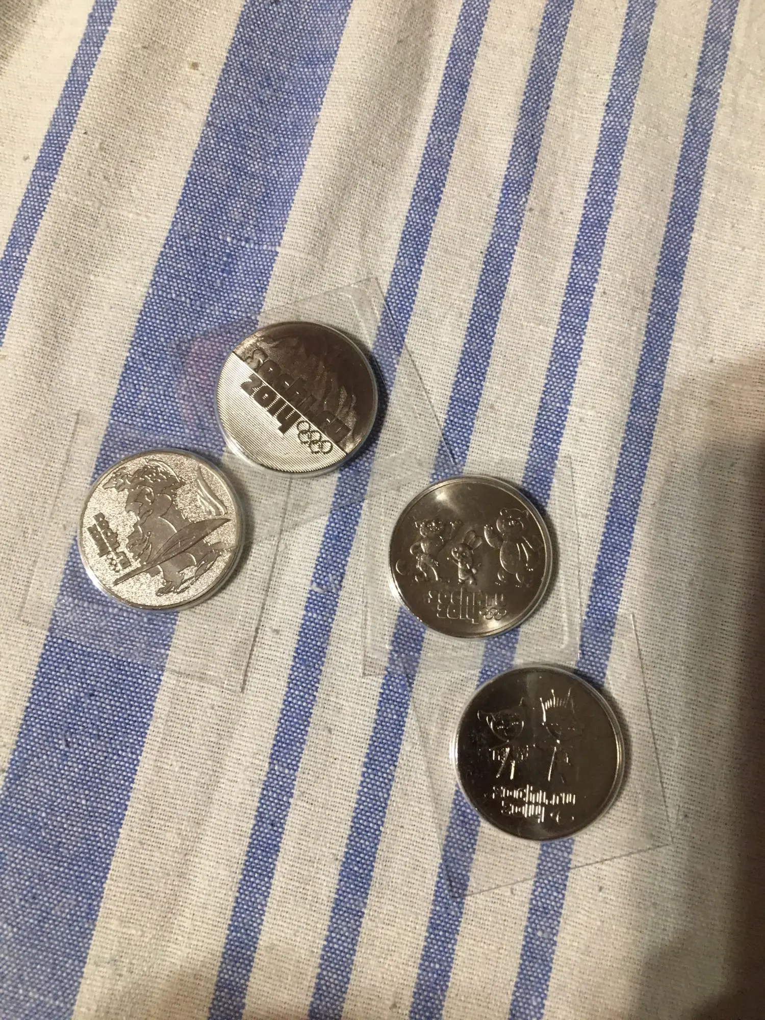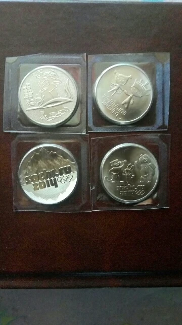 Набор из 4-х монет 25 рублей Олимпиада в Сочи 2014: Горы, Факел, Талисманы, Лучик, Россия, коллекция, 100 % оригинал