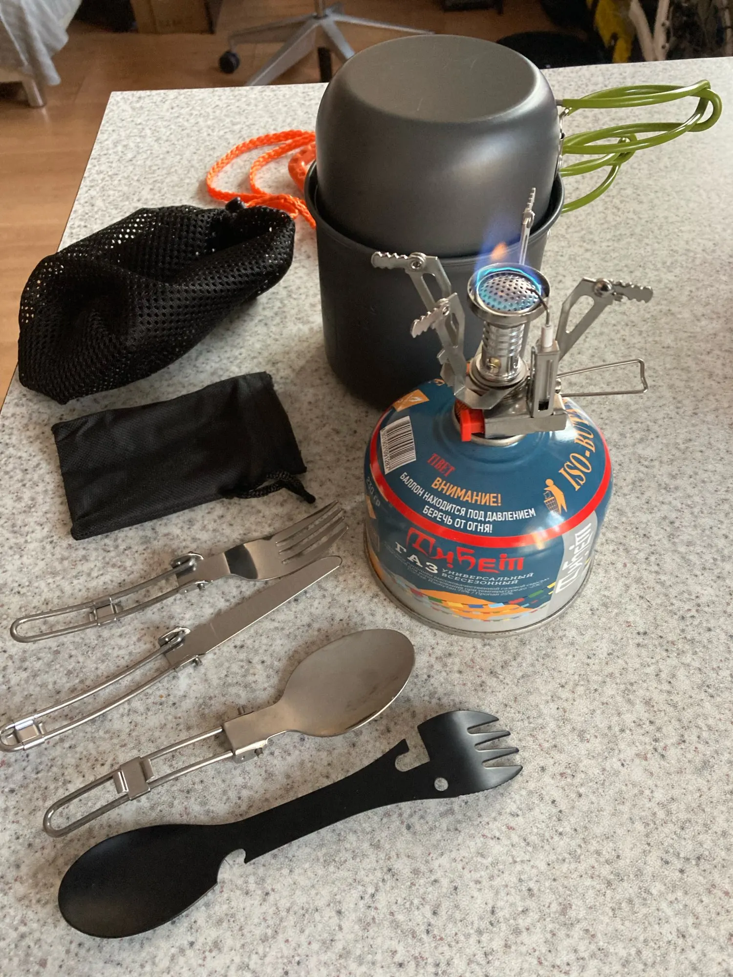 1 Внутри довольно много места, к горелке и столовым приборам можно ещё что-то класть.