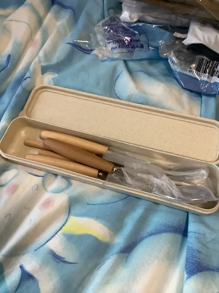 Набор посуды с деревянной ручкой, портативный столовый прибор из нержавеющей стали с серебряным ножом и вилкой, с пластиковой коробкой, 2/3/4 шт./компл.